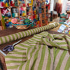 A muted spring pallet of grass green and pale pink in a wide stripe.