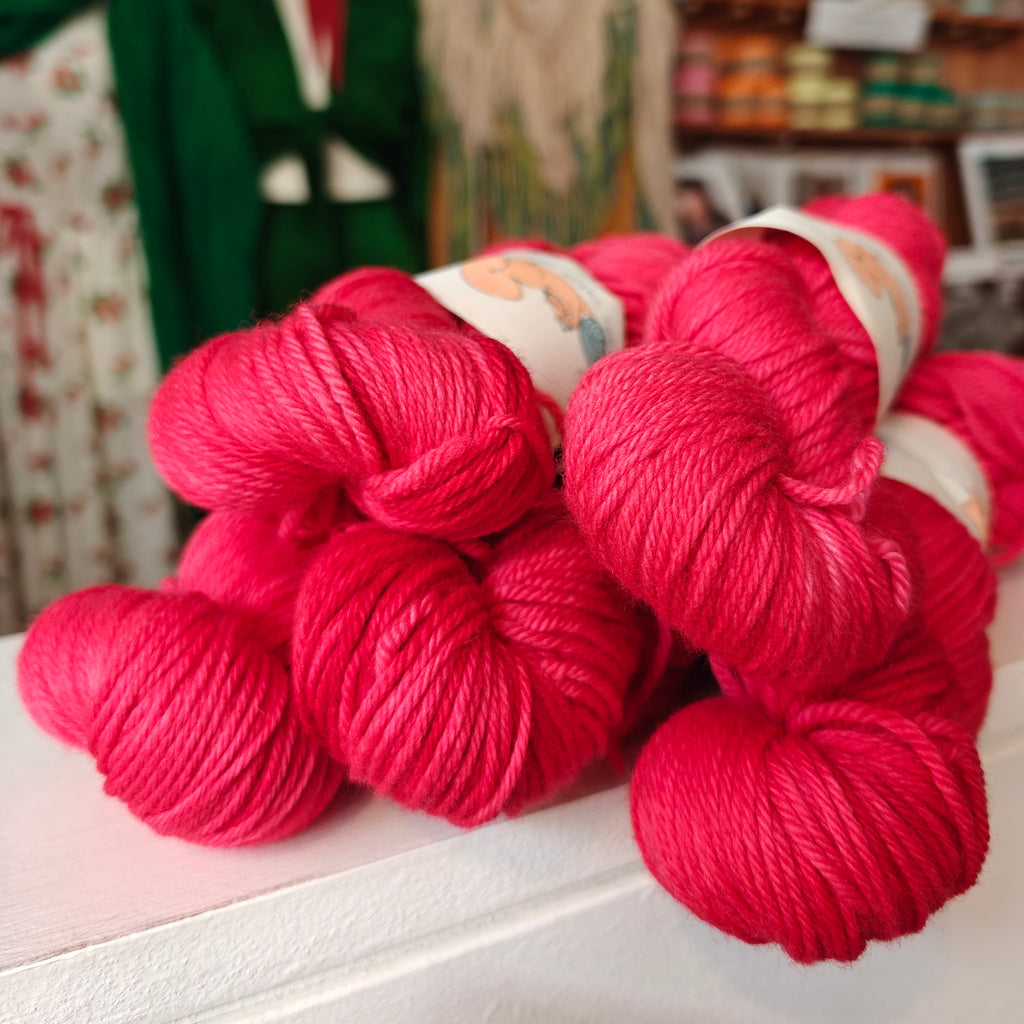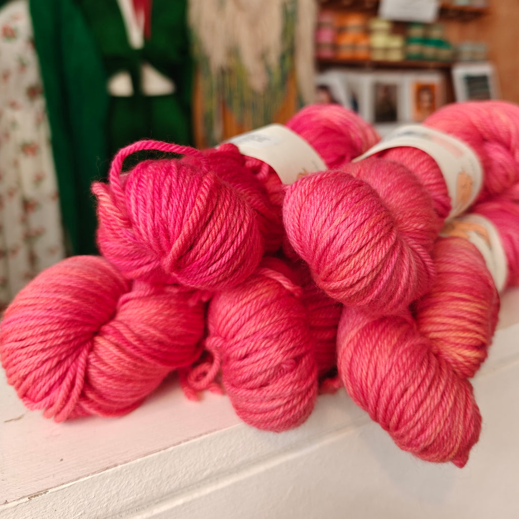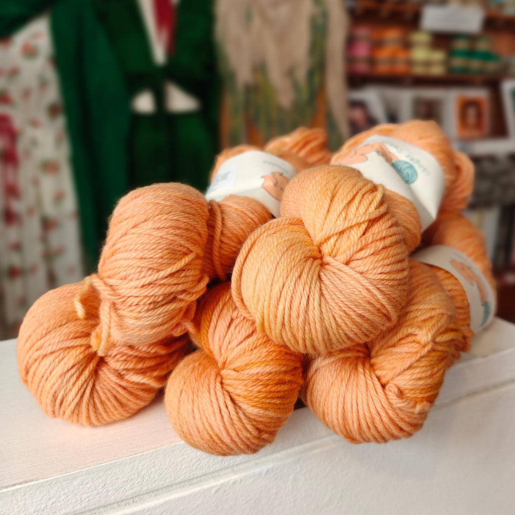 Ginger’s Hand Dyed Jolly Organic Worsted is a soft, bouncy and squishable worsted weight yarn made from the infamous Merino sheep. Whether you are using this yarn for a jumper, kid’s knits, a blanket, shawl or hat, this springy and cuddle-worthy yarn is sure to give you a bit of joy!
