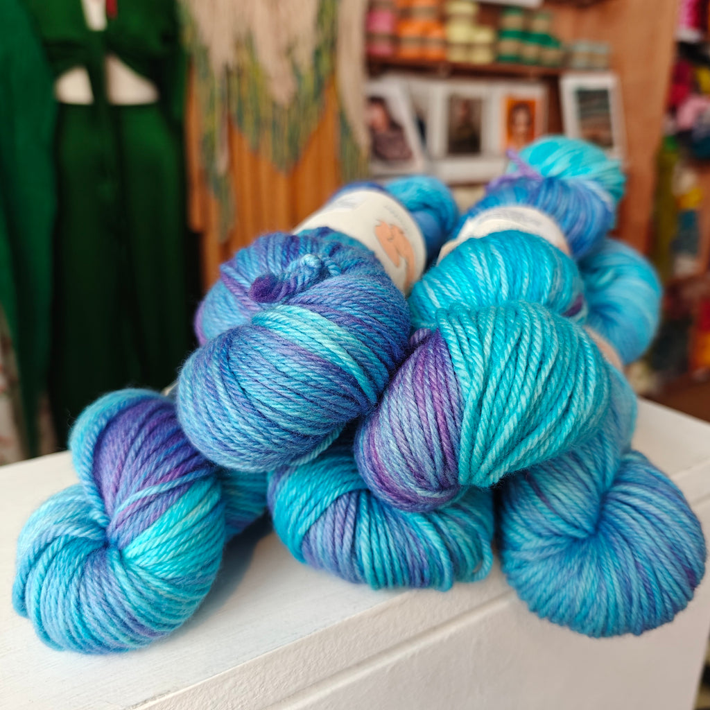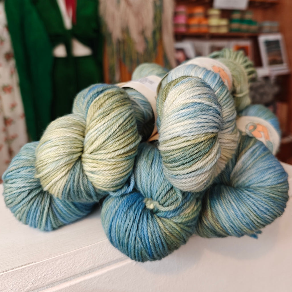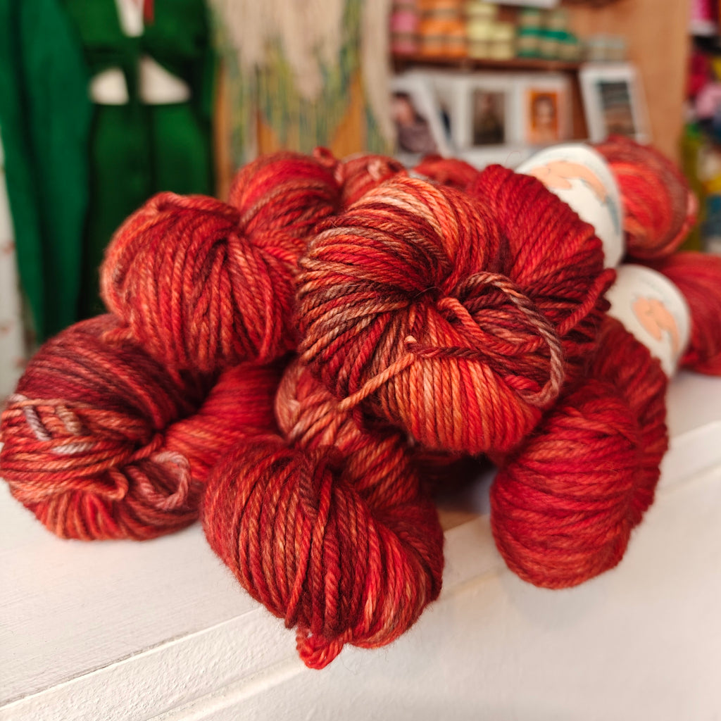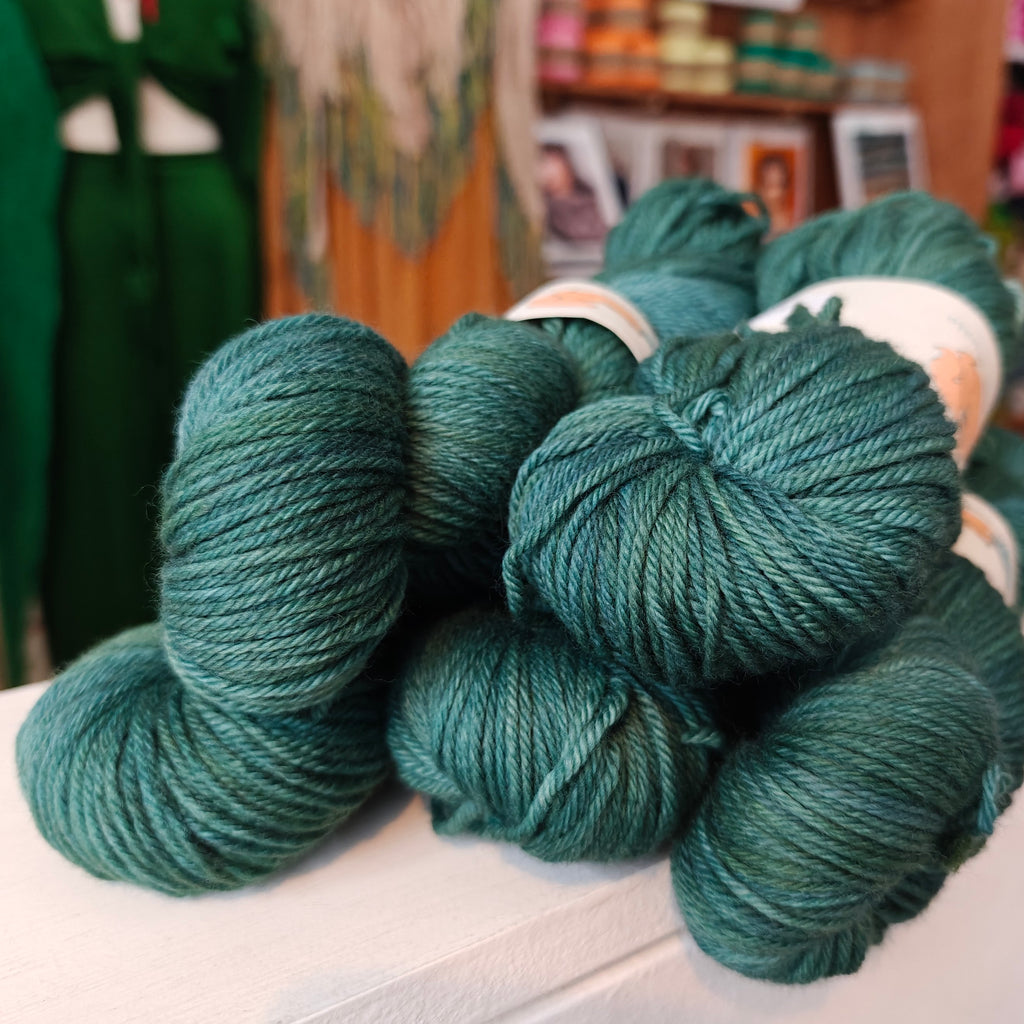 Ginger’s Hand Dyed Jolly Organic Worsted is a soft, bouncy and squishable worsted weight yarn made from the infamous Merino sheep. Whether you are using this yarn for a jumper, kid’s knits, a blanket, shawl or hat, this springy and cuddle-worthy yarn is sure to give you a bit of joy!