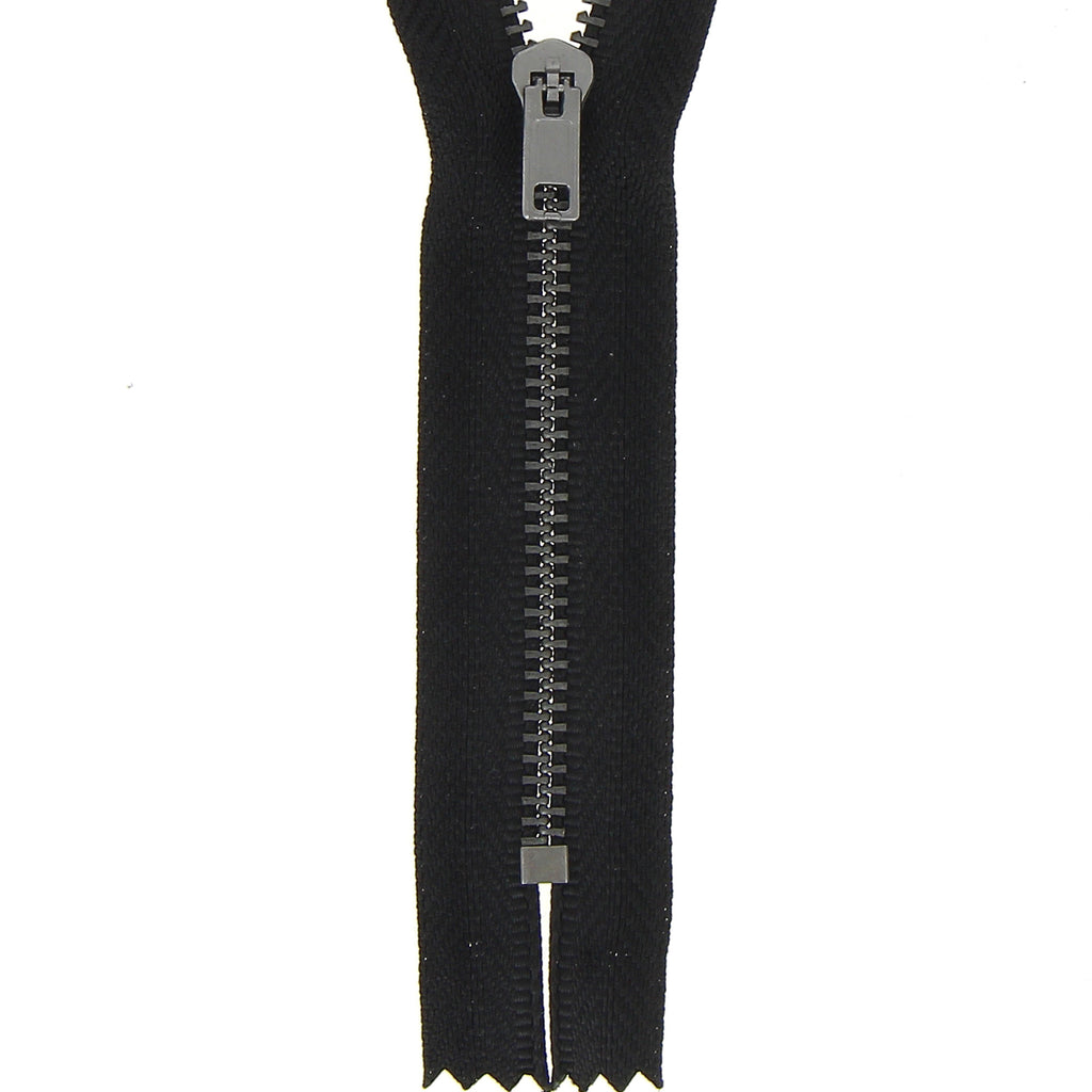 No.3 metal, closed-end, trouser zip with strong metal teeth.