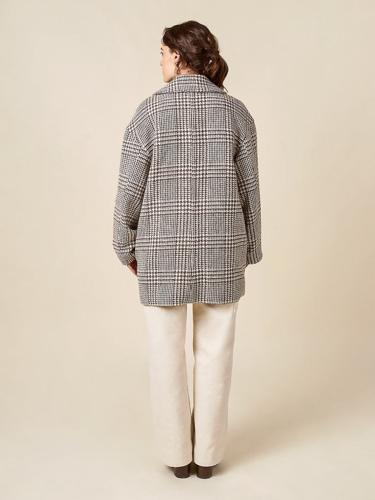 Modern yet timeless, Phoebe is a double-breasted coat with a cocoon shape. Fully lined, it features a dramatic notched collar and lapel that can also be worn closed to stop drafts.The dropped shoulder, roomy two-piece sleeve, and oversized fit make this coat ideal for layering over bulky winter layers.