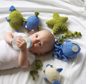 From striking lace and cables, to comforting knit and purl, 9 Months of Knitting has patterns for knitters of every skill level. Baby leg-warmers, a grandpa cardigan, and a hand-knitted undersea garden: Alexa and Emily have created patterns with a signature mix of retro quirkiness and playful attitude.
