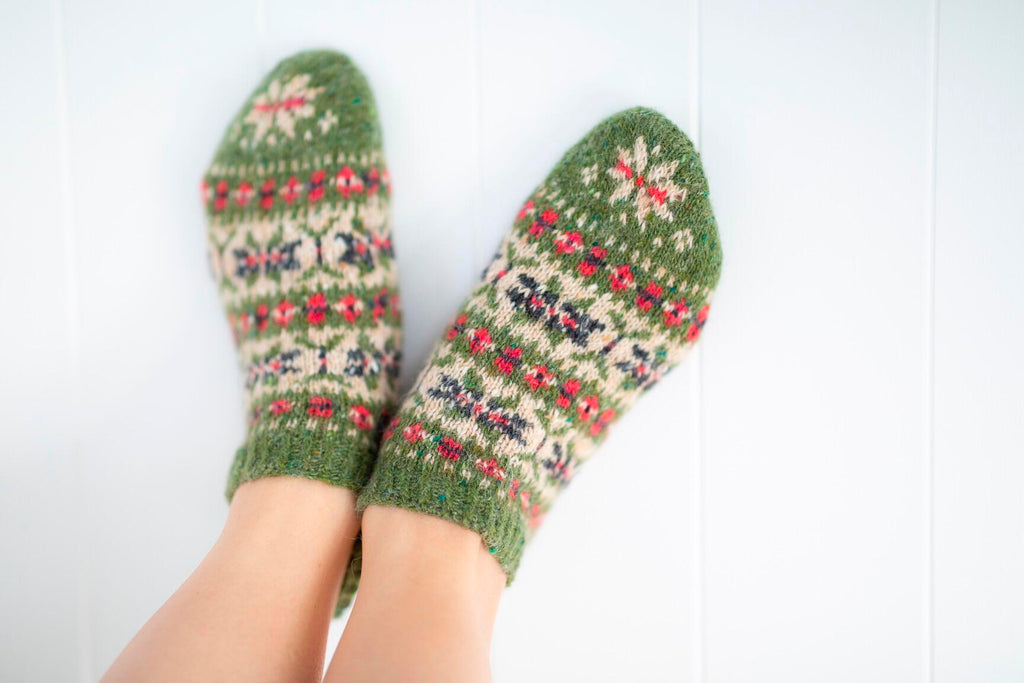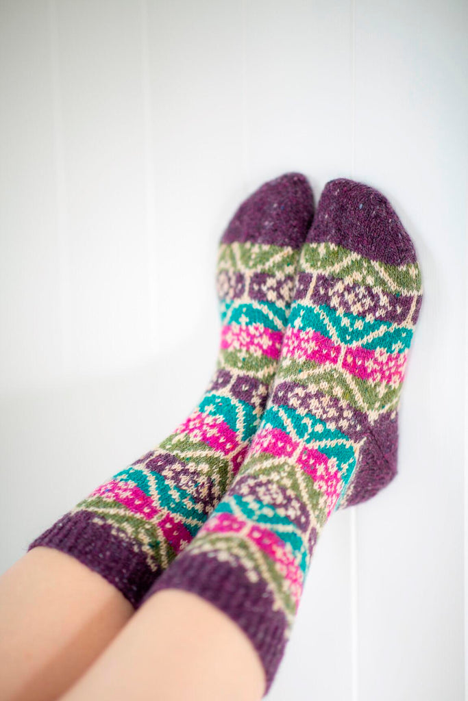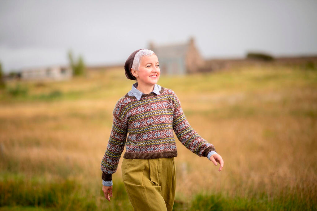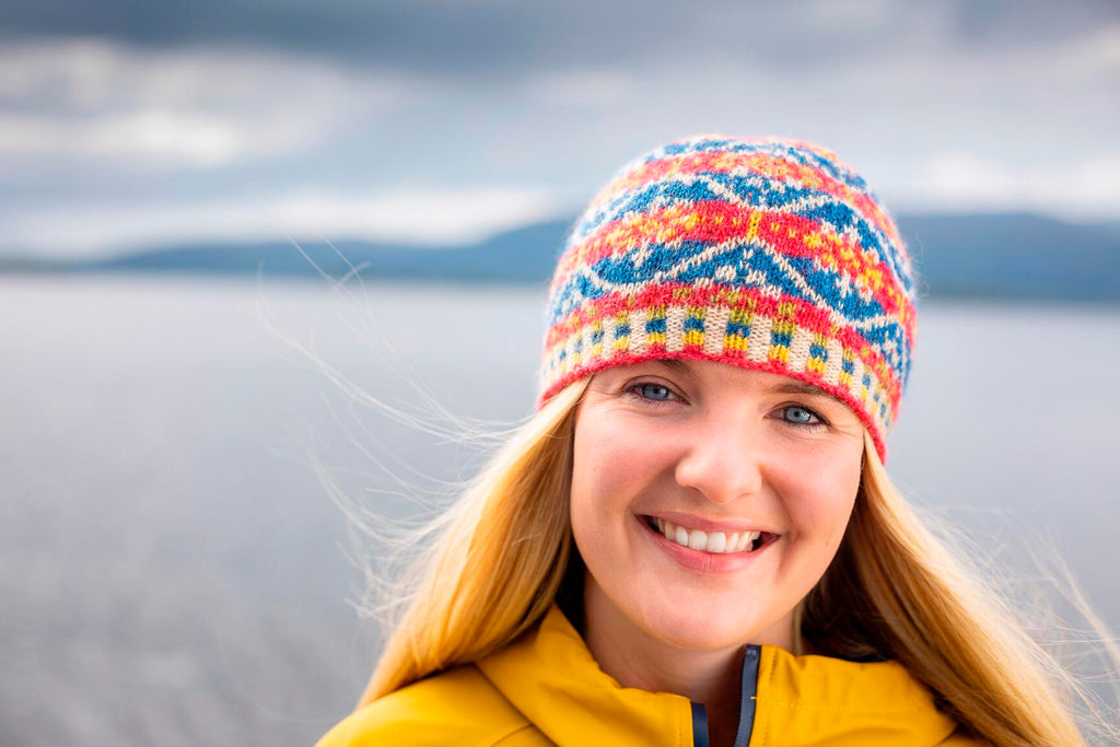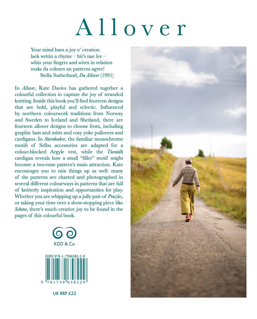 In Allover, Kate Davies has gathered together a colourful collection to capture the joy of stranded knitting. Inside this book you’ll find fourteen designs that are bold, playful and eclectic. Influenced by northern colourwork traditions from Norway and Sweden to Iceland and Shetland, there are fourteen allover designs to choose from, including graphic hats and mitts and cosy yoke pullovers and cardigans. In Starnkeeker, the familiar monochrome motifs of Selbu accessories are adapted for a colour-blocked Argyle vest, while the Tìoraidh cardigan reveals how a small “filler” motif might become a two-tone pattern’s main attraction. Kate encourages you to mix things up as well: many of the patterns are charted and photographed in several different colourways in patterns that are full of knitterly inspiration and opportunities for play. Whether you are whipping up a jolly pair of Pouzles, or taking your time over a show-stopping piece like Schene, there’s much creative joy to be found in the pages of this colourful book..
