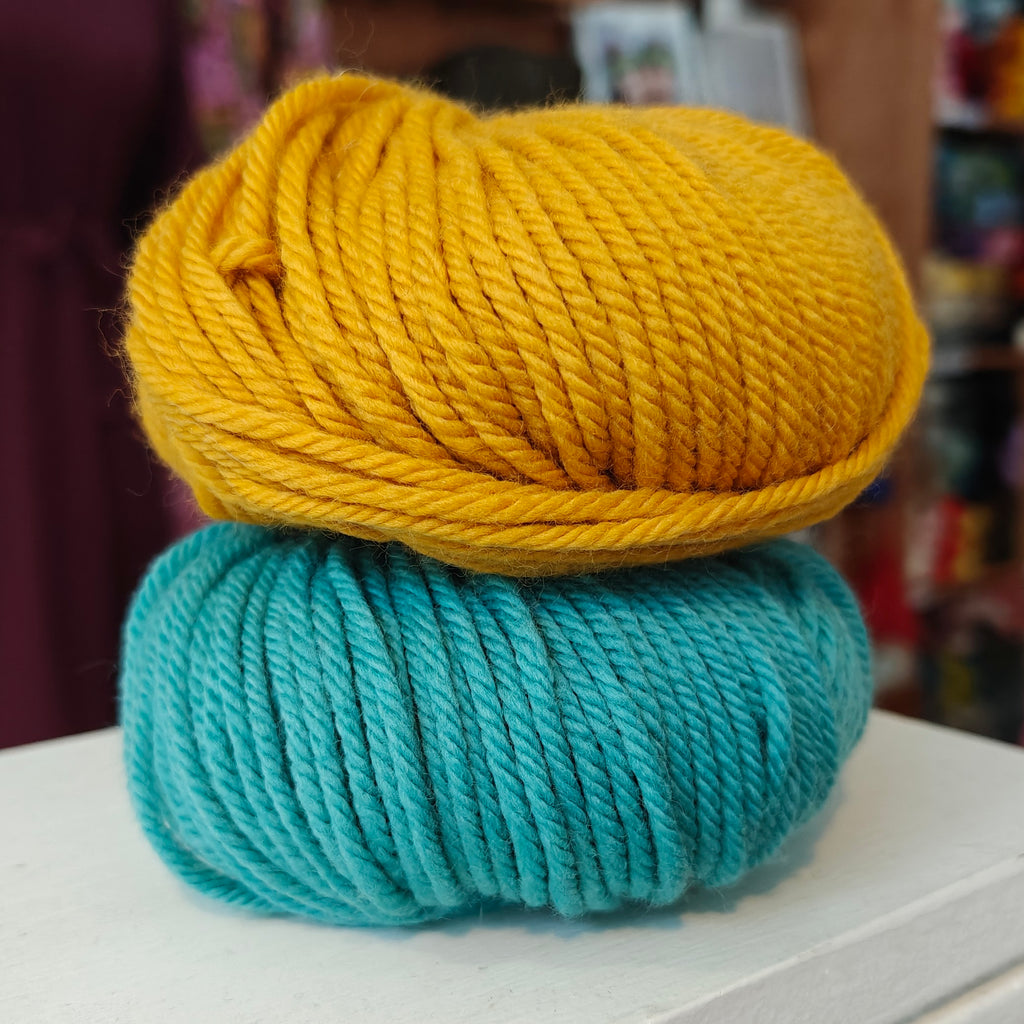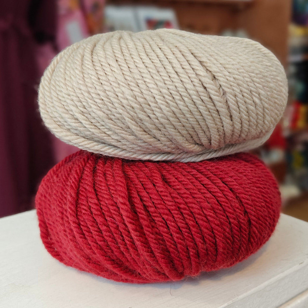 Your kit includes: Beautiful chunky superwash merino wool in your chosen colour combination.