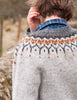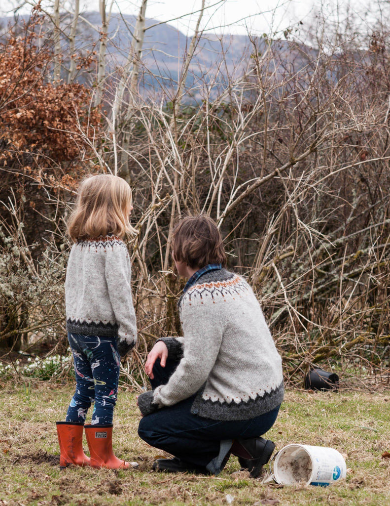 Corstorphine is worked from the bottom up in the round and steeked (cut open). The sleeves and body are worked separately and joined together for the yoke. There is gentle waist shaping for a casual but flattering fit in the adult version and short rows are worked in both versions above and below the colourwork on the yoke to comfortably lower the front neckline. The buttonbands are knit on after cutting the steeks.