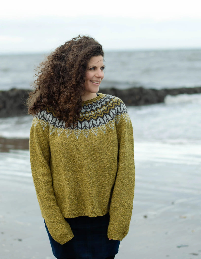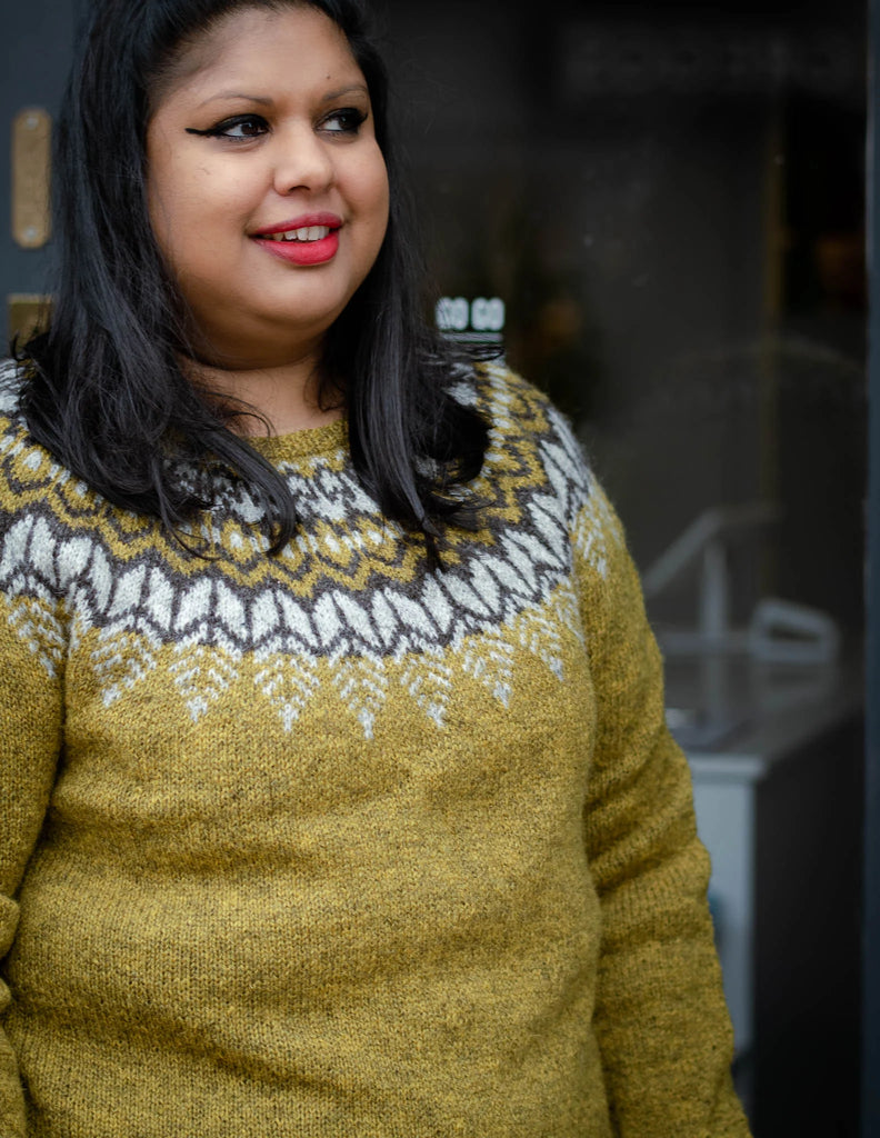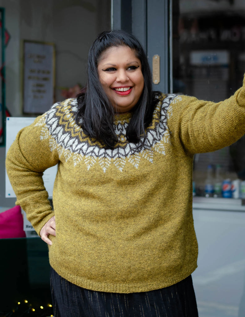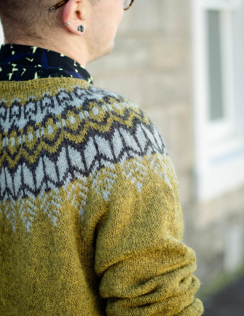 Specifically evoking the Icelandic Lopapeysas yoke style, this slouchy, comfortable sweater pattern lets you combine the colours you love wearing to create a unique handmade piece. One of our favourite features of this style is the way that the yoke feathers into the main body of the sweater, which means it avoids the visual heaviness of some more blocky yoke patterns. And you don’t have to worry about long floats while constructing the yoke detailing - the Threipmuir pattern uses a fun slipped stitch trick to avoid them.