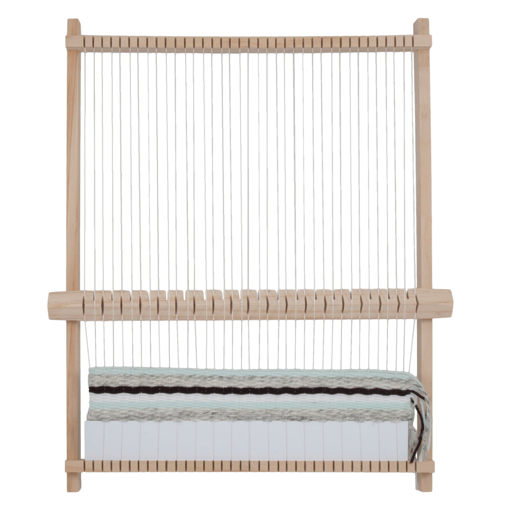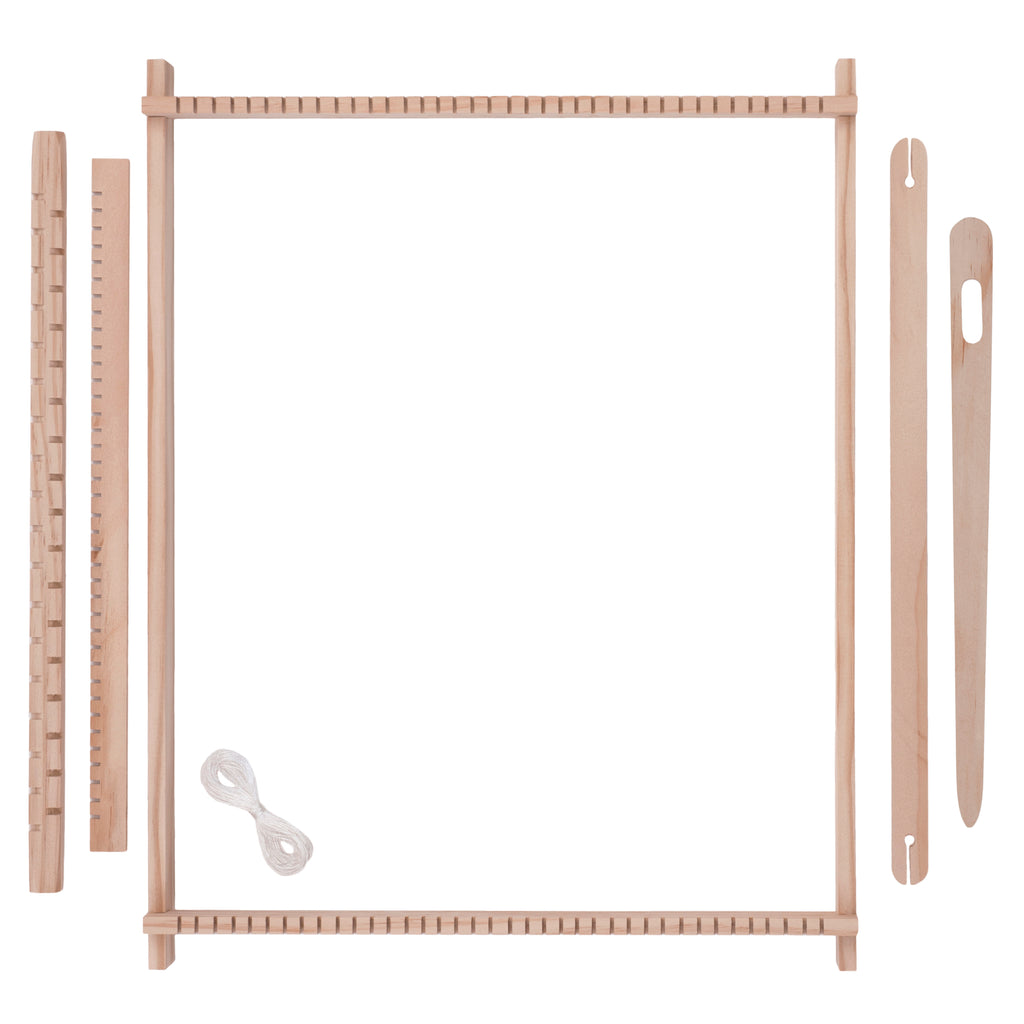 Loom dimensions: 44 x 34 x 2.5cm. A great all rounder, all you will need to choose is your yarn. The packaging has set up instructions and basic weaving instructions which include styles for the more advanced weaver. Made from pine and plywood. Kit contains: loom, needle, shuttle, warp separator and warp yarn.